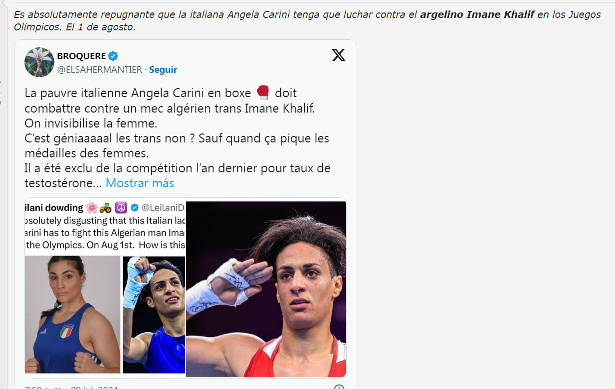 Esta burla, esta degradación del espíritu olímpico ya pasó a fase de normalización. Si antes, a finales de los 80s, fueron los esteroídes que mataron a muchos atletas; ahora son los traVlos esteroizados y hormonizados que simbólicamente abren el camino al nuevo gólem degradado del NWO. PARIS 2024 es formalmente el inicio, ya sin caretas, ya sin falsas apariencias para androgenizar todo, para nublar la evidencia biológica, para decir que blanco es negro, que un pene femenino es respetable y nueva experiencia sexual, que un tal.mudIK0 perverso que quiere que te mueras es tu amigo liberador…
