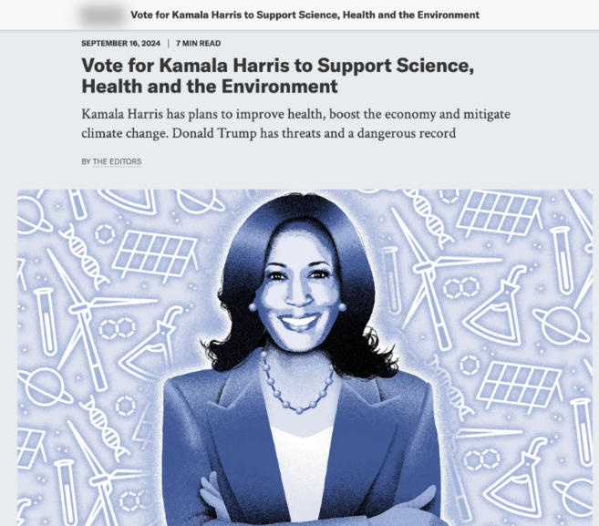 Por eso, por segunda vez en los 179 años de historia de nuestra revista, los editores de Scientific American apoyan a una candidata a la presidencia. Esa persona es Kamala Harris.