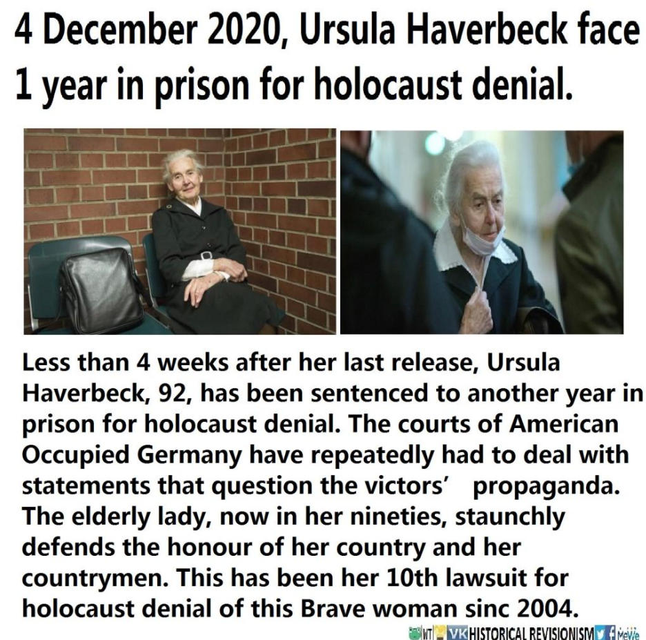 NUNCA se doblegó, nunca se retracto de asegurar que todo había sido un mero holocuento julaico, ni aunque la metieran a la cárcel con ya más de 90 años.