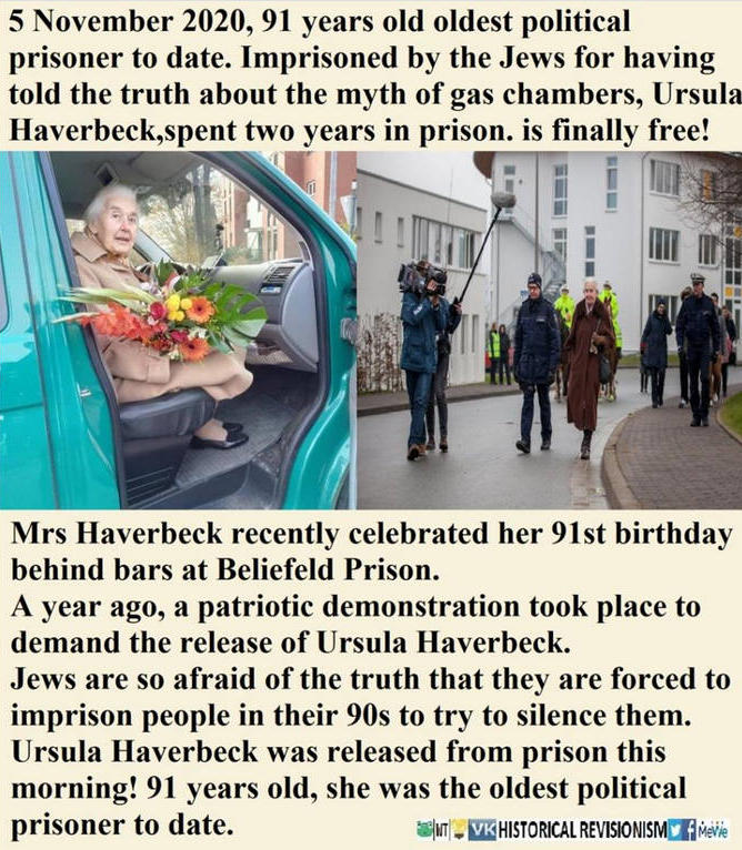 NUNCA se doblegó, nunca se retracto de asegurar que todo había sido un mero holocuento julaico, ni aunque la metieran a la cárcel con ya más de 90 años.