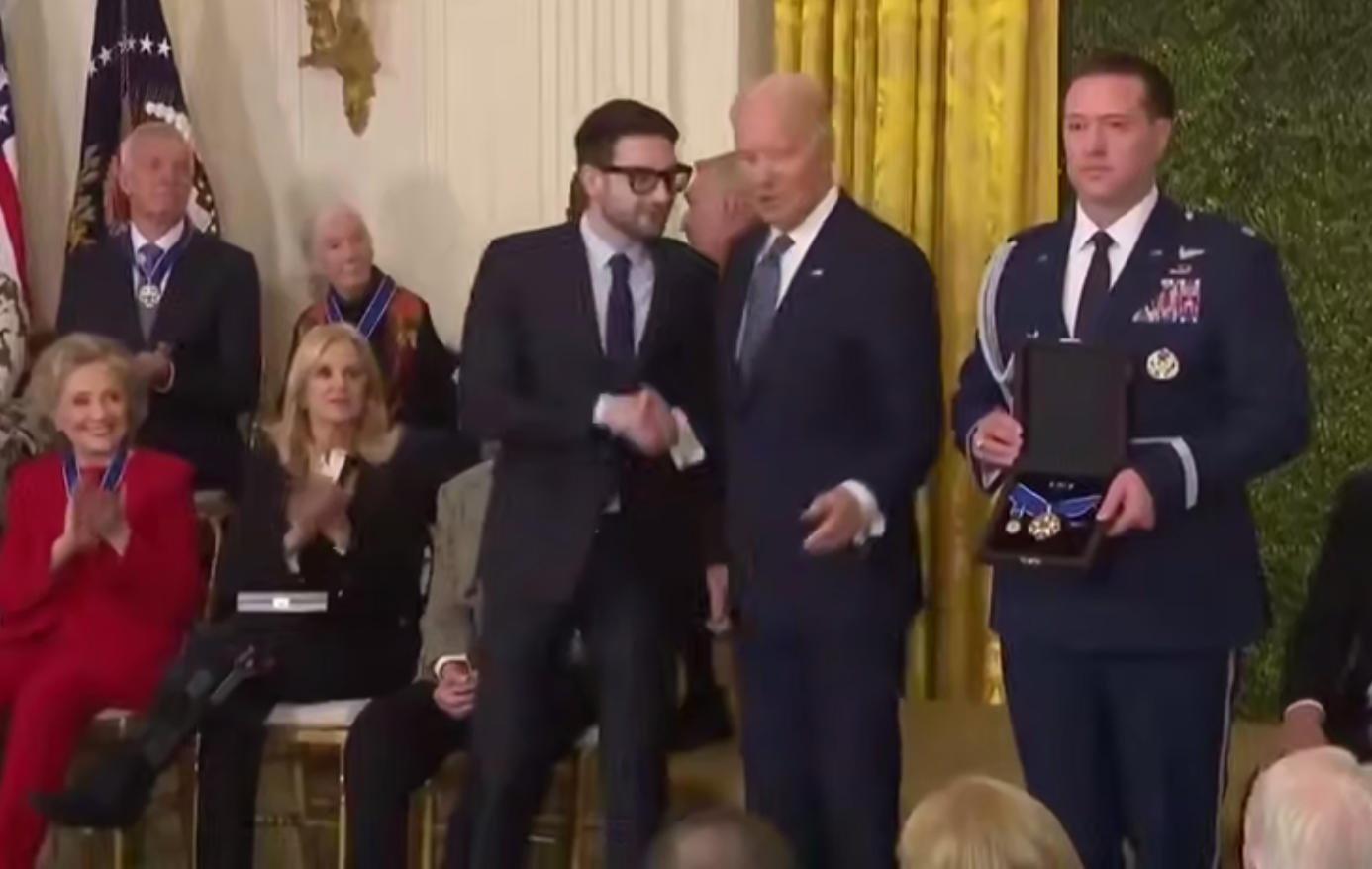 Joe Biden entrega 19 medallas presidenciales de la «libertad»; entre los condecorados se encuentran Hillary Clinton y George Soros.