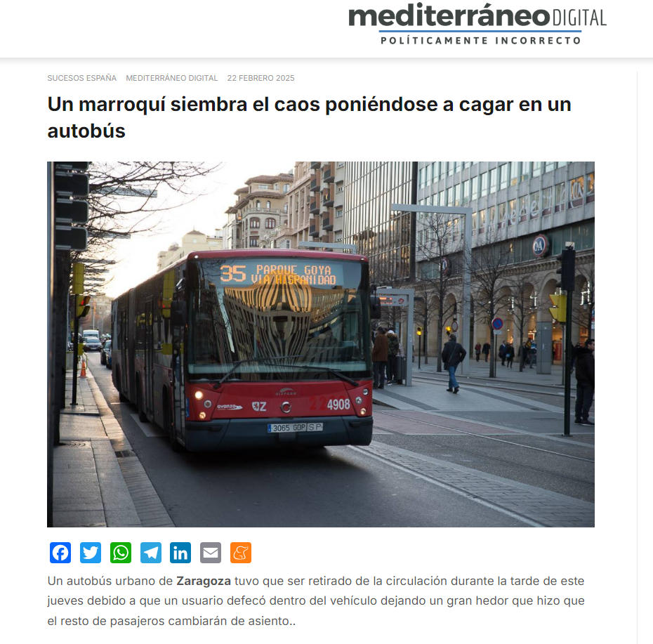 Un marroquí siembra el caos poniéndose a cagar en un autobús.