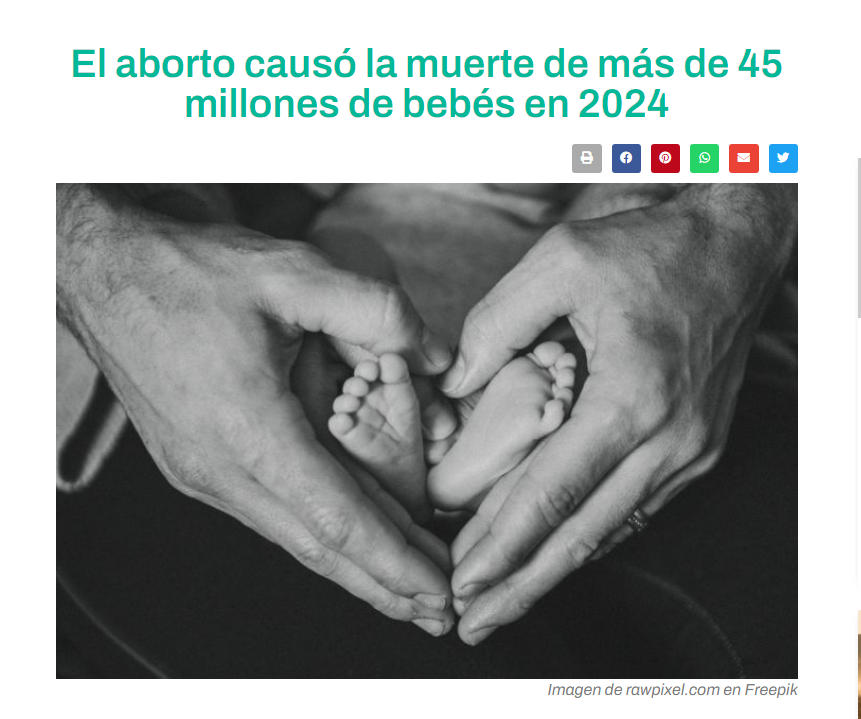 La web Worldometer publica cada año las cifras de causas de mortandad mundial, la cual revela que en 2024, murieron por aborto provocado 45,1 millones de bebés, más que nunca.