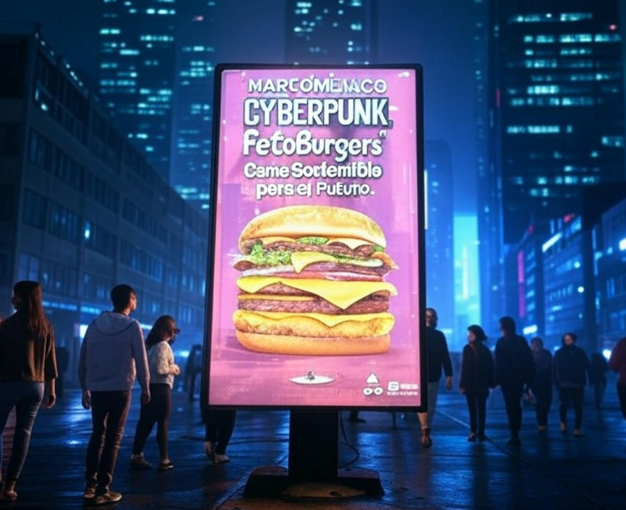 En las pantallas públicas, tribus de sororas sudadas sonrientes mordían hamburguesas jugosas, mientras los slogans holográficos parpadeaban: