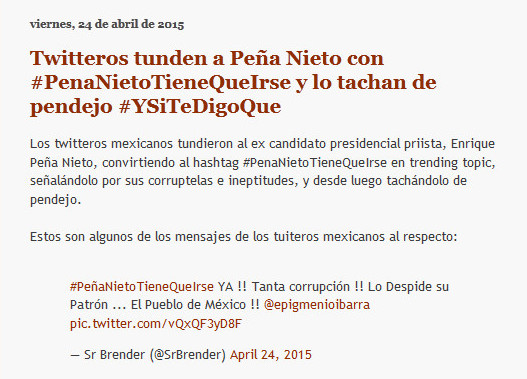 Duermo bien siendo todo un activista: en abril del 2015 tundí a «tuitazos» a un presidente-mesero del NWO. Ya estamos en visperas del 2018 y mi acción cambió dramáticamente al país (link).