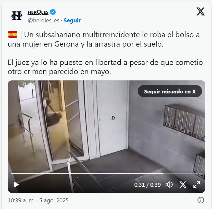 🇪🇸 | Un subsahariano multirreincidente le roba el bolso a una mujer en Gerona y la arrastra por el suelo.