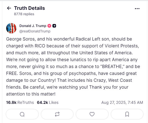 Trump vs Soros. Antes vendió lo mismo con Hillary, Zuckerberg, Epstein y cumplió una mi3rd3