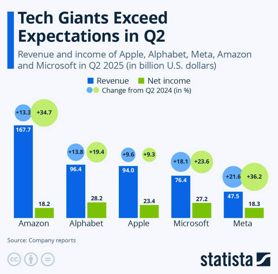 Amazon, 167.7 mil millones de dólares en ingresos en un solo trimestre, con un 34.7% más de beneficio respecto al año anterior.