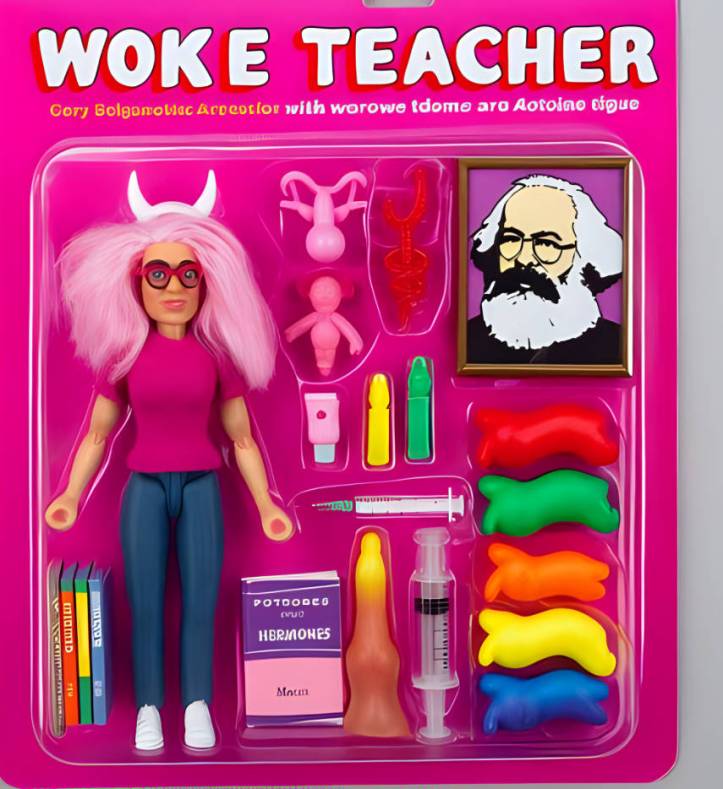 WOKE TEACHER = CHARO INVESTIGADORA. Action figures del Novus Ordo Seclorum (edición limitada)