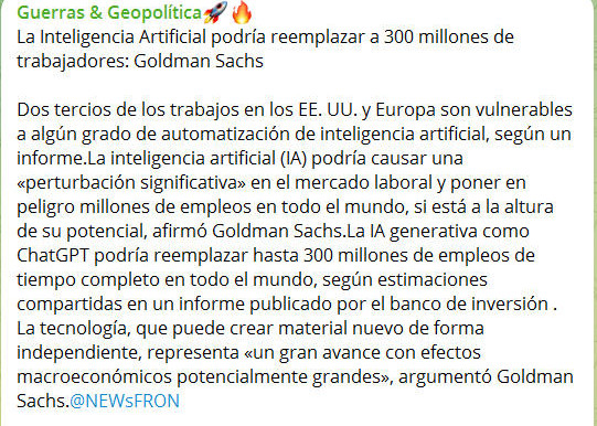 NOTA MIA: cientos de conferencias que he visto y cientos de doctorcitos loro de ciencias sociales que sacerdotizan que la IA no te va a quitar el trabajo, que te va a acompañar, que casi casi está hecha pensada en ti y para emanciparte pues vales muhco. Todo, mera teoría implicita.