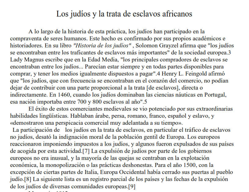 Nota: muy bien documentado, con datos duros y ampliamente argumentado con fechas históricas y nombres. Pero… no olvidar que es financiado por La Nación del Islam.