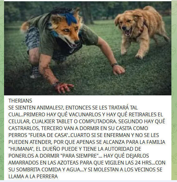 RAZÓN CONSECUENTE: ESTERILIZA O CASTRA A TODO IMBÉCIL THERIAN QUE TE ENCUENTRES EN LA CALLE, MÉTELE 20 INYECCIONES PARA PREVENIR LA RABIA, DALE DE COMER HUESOS, QUE DUERMA A LA INTEMPERIE, QUE SE RIFE TIROS CON OTROS THERIAN EN PELEAS DE APUESTAS, QUE HUELA Y LAMA CULOS DE DESCONOCIDOS POR LA CALLE.